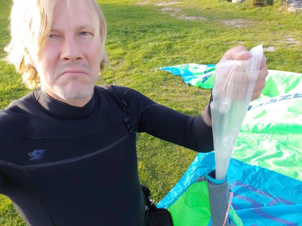 tegelt (tegelikult) oli plaan foilitama minna - kõik oli juba valmis: kalipso seljas, lohe täis, liinid küljes, kell käe peal. ja siis tuli zagel ning lohe tegi selle peale pffffff ja läks tühjaks. õnneks zagel märkas, et sealt otsa juurest justkui vuhises õhku kõige rohkem ning kui lahti kakkusin krõpsu ja värgi, siis oligi sealt kuidagi punnitanud ja sisekummi katki pressinud. peaks olema iizi-fixz.